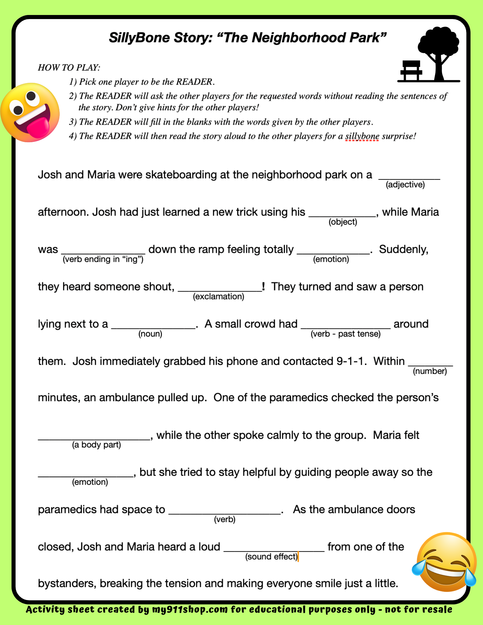 **FREEBIE** SillyBones "The Neighborhood Park" Activity Sheet